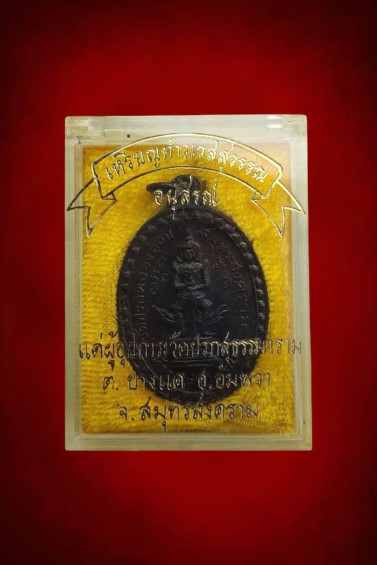 เหรียญท้าวเวสสุวรรณ วัดปรกคลองอ้อม (วัดปรกสุธรรมาราม) จ.สมุทรสงคราม ปี ๒๕๑๘