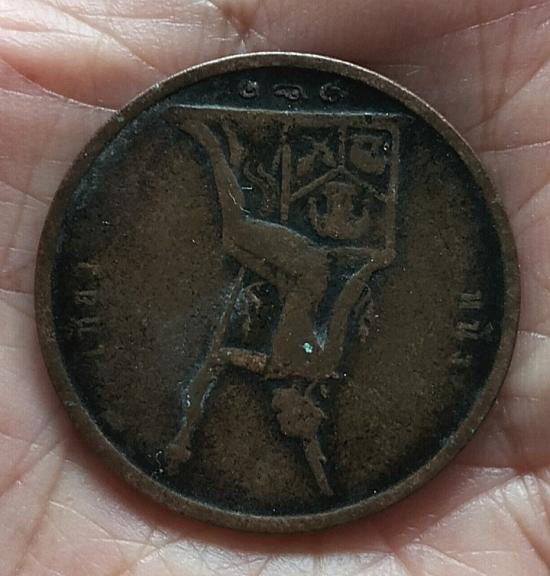 เหรียญทองแดง หนึ่งเซี่ยว พระบรมรูป ร.5- พระสยามเทวาธิราช ร.ศ.121 พระเศียรกลับ