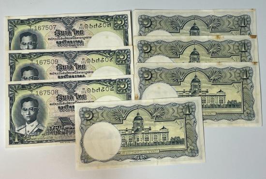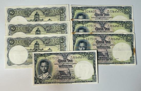 ธนบัตร 1 บาท โทมัส รัชกาลที่ 9 หน้าหนุ่ม จำนวน 7 ใบ สภาพสวยตามรูป