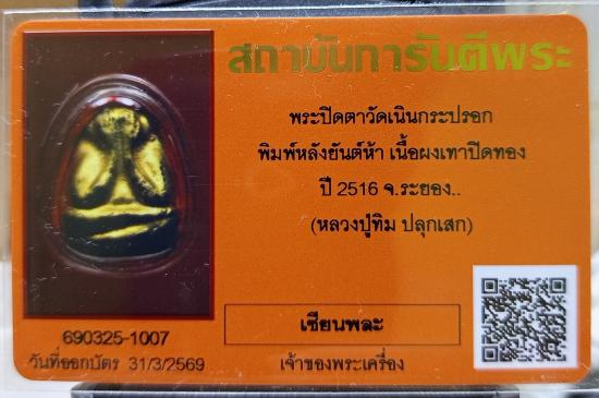 .....ปิดตาหลวงปู่ทิม ออกวัดเนินกระปรอก ปี 16.....( พร้อมบัตร )