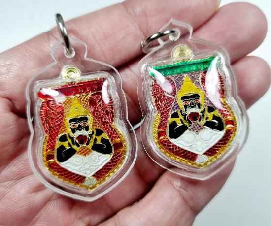 ราหู ลป.ศิลา รุ่นเหนือรุ่นเหนือดวง วัดพระธาตุหมื่นหิน เนื้อทองฝาบาตรลงยา 2เหรียญ เเลี่ยมพร้อมใช้