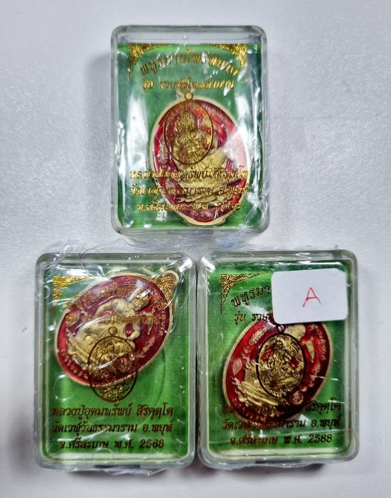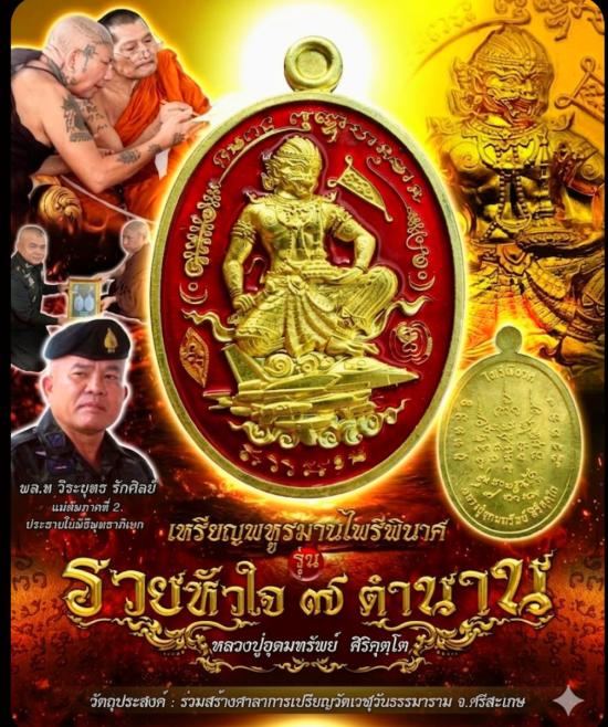 พหูรมานไพรีพินาศ รุ่น รวยหัวใจ ๗ ตำนาน หลวงปู่อุดมทรัพย์ วัดเวฬุวันธรรมาราม หลวงปู่ศิลา เมตตาอธิษฐานจิต ทองฝาบาตรลงยาสีแดง3เหรียญ ไม่แกะซีล ลุ้นเลข