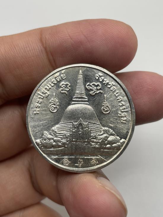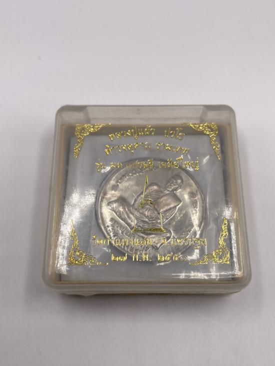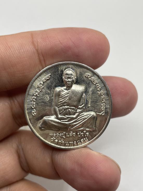 เหรียญหลวงปู่แผ้วปวโร วัดกำแพงแสน จ.นครปฐม รุ่นมหาเศรษฐีเจดีย์ใหญ่ เนื้อเงิน ตอกโค๊ตเป็นเหรียญขนาดใหญ่ 5ซ.ม. |
