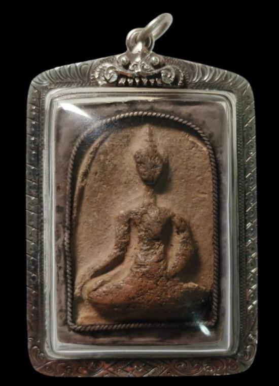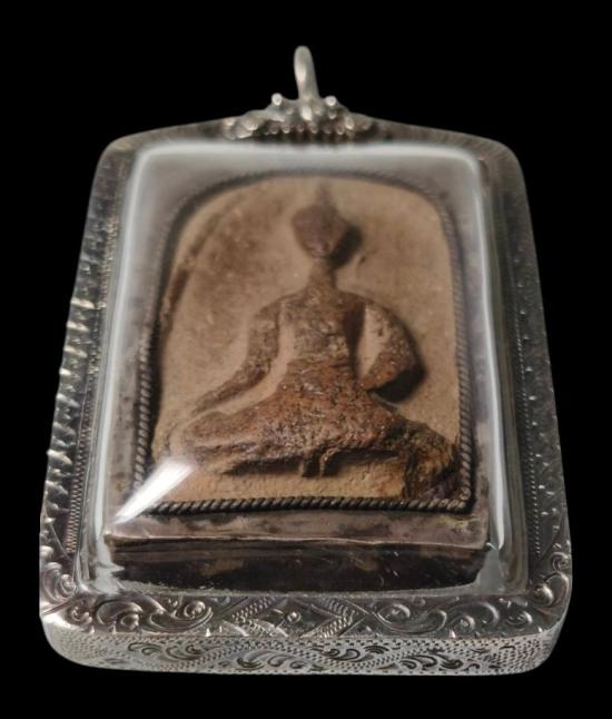 พระสิบชาติตัดเดี่ยว กรุวัดกระชาย จ.อยุธยา พิมพ์มารวิชัยใหญ่ เลี่ยมเงินเก่า