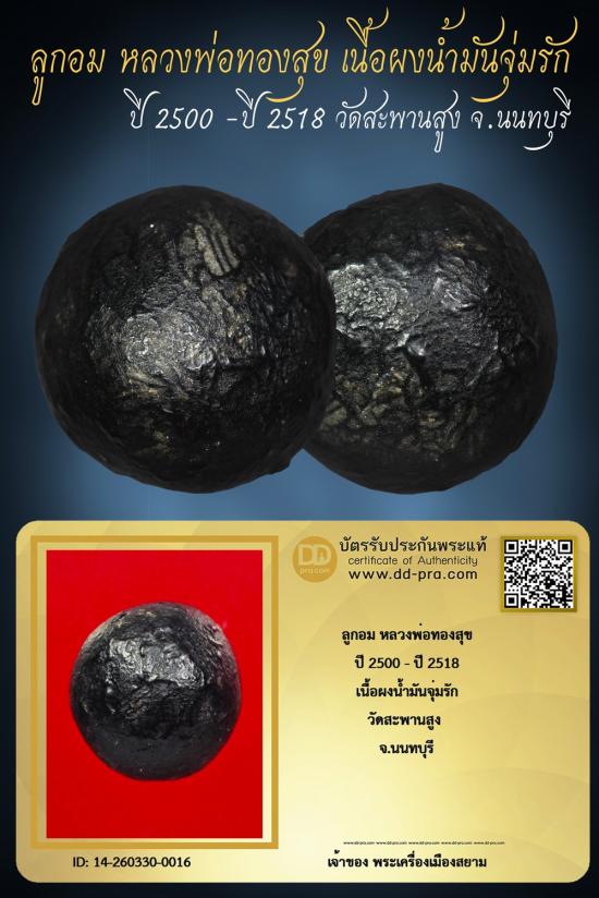 ลูกอม หลวงพ่อทองสุข ปี 2500 - ปี 2518 วัดสะพานสูง จ.นนทบุรี เนื้อผงจุ่มรัก (เนื้อเดียวกับพระปิดตา) +++ หายากมาก ครับ + บัตร
