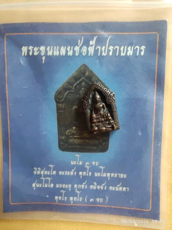 พระขุนแผนช่อฟ้าปราบมาร (ฟันลูกเดียว) เนื้อสัมฤทธิ์ อุดผง มูลนิธิหลวงปู่ทิมจัดสร้าง พร้อมซองเดิม |
