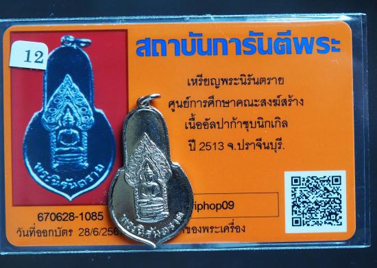 เหรียญนิรันตราย ศูนย์การศึกษาคณะสงฆ์ วัดหลวงปรีชากูล ปราจีนบุรี ปี พ.ศ.2513 เนื้ออัลปาก้าชุบนิเกิล พร้อมบัตรรับรอง