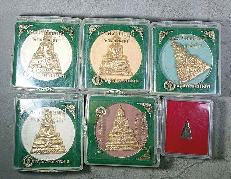 พระศรีศากยมุนี"พระเสาชิงช้า"หน้ากากทองทิพย์ เนื้อผงศักดิ์สิทธิ์ ปี2550 (กทม.จัดสร้าง) 5 องค์ กล่องเดิม +พระชัยจังหวัด (พระชัยวัฒน์) พิธีสมโภช 76 จังหวัด วัดสุทัศน์ ปี49 เนื้อนวะ โค๊ด กรุงเทพ |