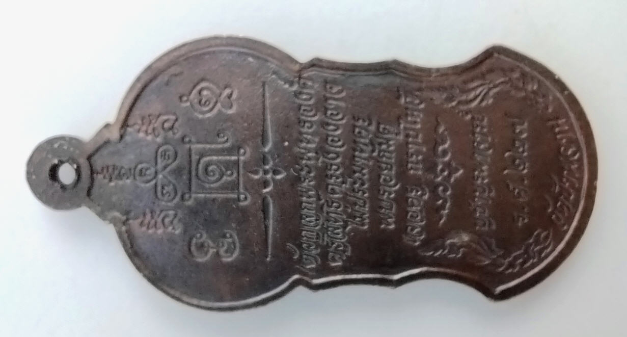 ด้านหลังลงยันต์ครู และพระคาถาประจำตัวของหลวงปู่ เหรียญออกแบบสวยคมดูเข้มขลัง