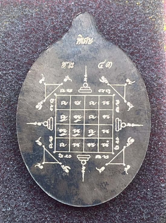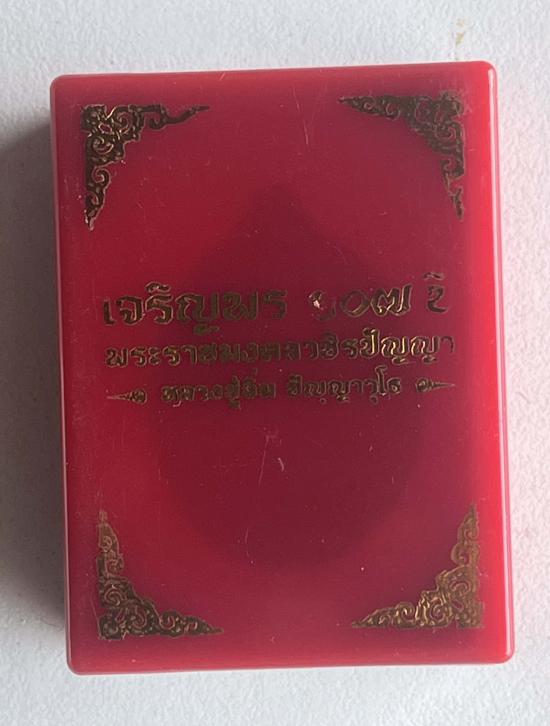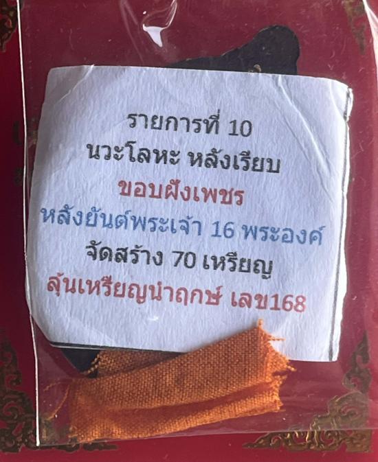 หลวงปู่อิ่ม หลวงพ่ออิ่ม วัดทุ่งนาใหม่ นครศรีธรรมราช รุ่นเจริญพร เนื้อนวะโลหะ ขอบฝังเพชร หลังยันต์พระเจ้า 16 พระองค์ พร้อมจีวรหลวงปู่
