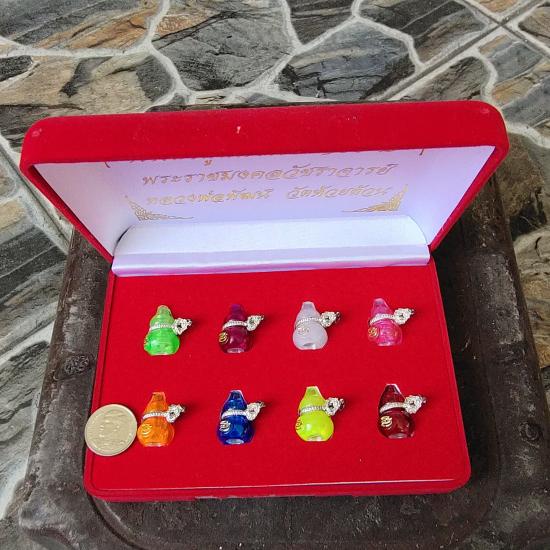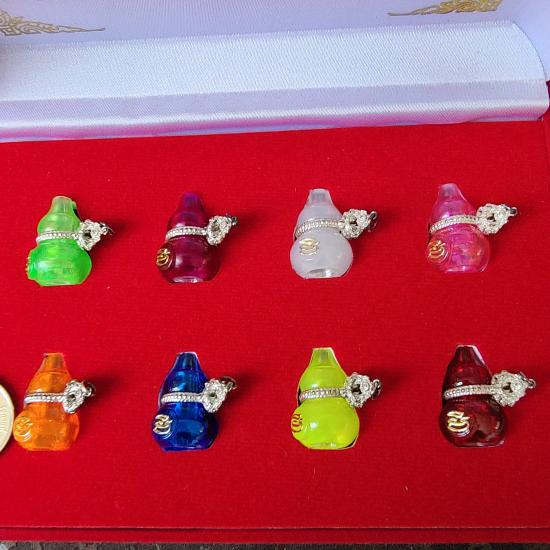 น้ำเต้าดูดทรัพย์รุ่น 100 ปี หลวงพ่อพัฒน์ วัดห้วยด้วน (สายรัดเงิน) 1 ชุดครบทุกสีจำนวน 8 องค์ กล่องกำมะหยี่เดิม จำนวนการสร้างน้อยมากๆแบบนี้หายากสุดๆครับกว่าประมูลชุดนี้มาได้ รับประกันแท้ตามกฎ