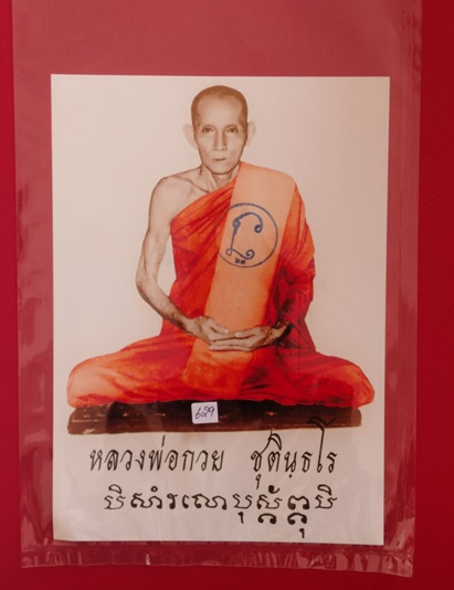 รูปถ่ายหลวงพ่อกวย ชุติธโร วัดโฆสิตาราม พิมพ์นั่งเต็มองค์ ปี 2563