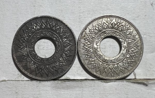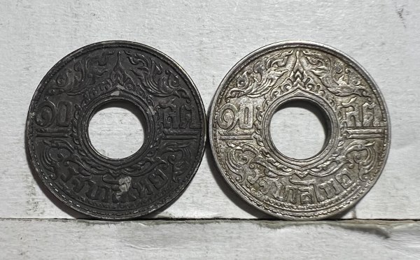 เหรียญสตางค์รู 10 สตางค์ รัชกาลที่ 8 ปี 2484 (จำนวน 2 เหรียญ) เนื้อเงิน ครับ