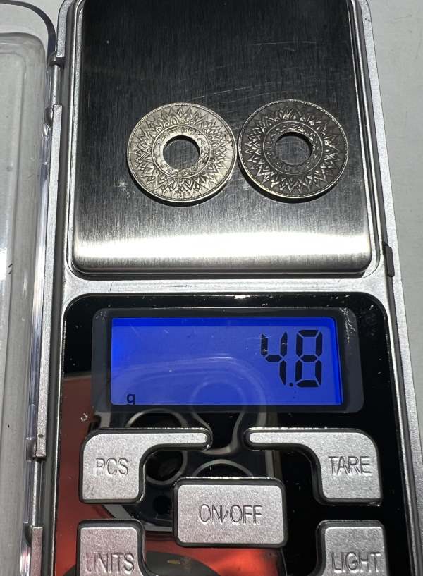 เหรียญสตางค์รู 10 สตางค์ รัชกาลที่ 8 ปี 2484 (จำนวน 2 เหรียญ) เนื้อเงิน ลายกนกแข้งสิงห์ ขนาด เส้นผ่าศูนย์กลาง 1.9 ซ.ม. น้ำหนักรวม 4.8 กรัม ราคาเบาๆ ลองพิจารณาดู รับประกันตามกฎ จัดส่ง EMS ทุกรายการครับ