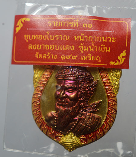 เนื้อชุบทองโบราณ หน้ากากนวะ ลงยาขอบแดง เลข 179