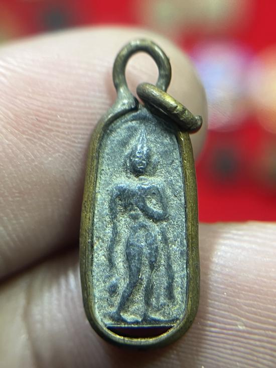 พระลีลาจิ๋ว 2หน้า เนื้อชิน เลี่ยมจับขอบเก่า ไม่ทราบสำนัก
