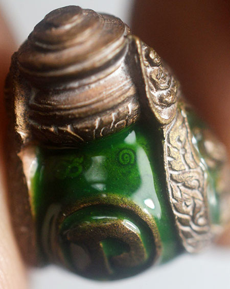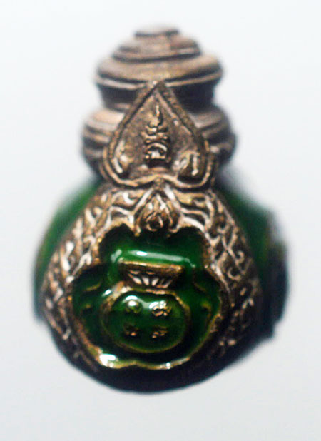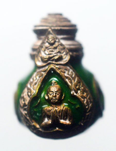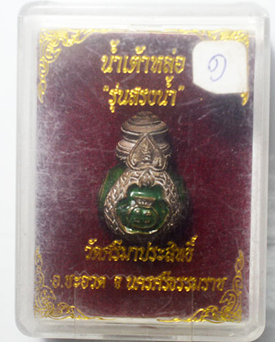 น้ำเต้าหล่อ รุ่น สรงน้ำ ไ อ้ ไ ข่ วัดศรีมาประสิทธิ์ อ.ชะอวด จ.นครศรีธรรมราช เนื้อทองแดงลงยาสีเขียว เลข 1
