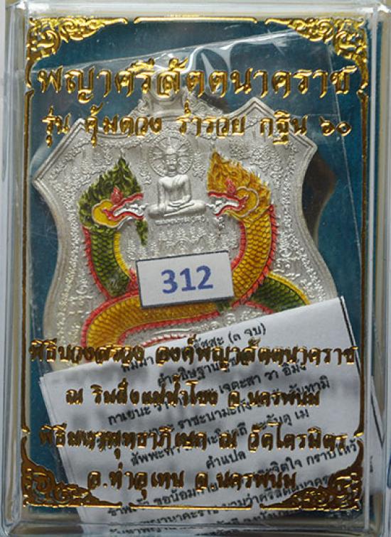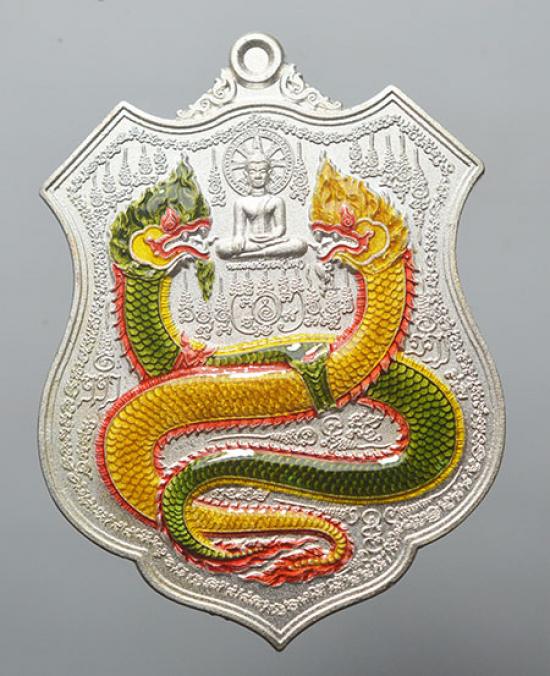 เหรียญ พญาศรีสัตตนาคราช รุ่นคุ้มดวง ร่ำรวย กฐิน60 วัดไตรมิตร จ.นครพนม เนื้อกะไหล่เงิน พิเศษลงยานาคราช เลข 312 สวยๆพร้อมกล่องและใบคาถาเดิม |