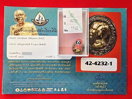 ***ติดรางวัล***เหรียญทรงยินดี พิมพ์เล็ก ปี 2536 หลวงพ่อแพ วัดพิกุลทอง ติดรางวัลที่ 1 <278>