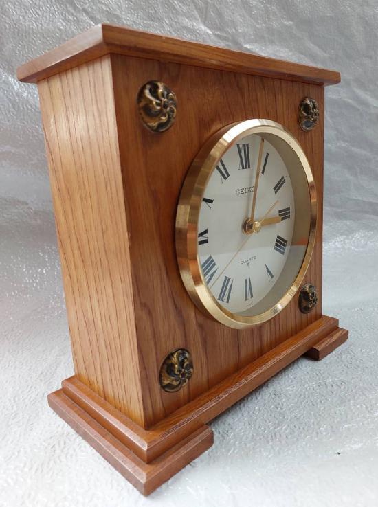 นาฬิกาตั้งโต๊ะ SEIKO กล่องไม้ ทรงสี่เหลี่ยม สไตล์วินเทจญี่ปุ่น Made in Japan
