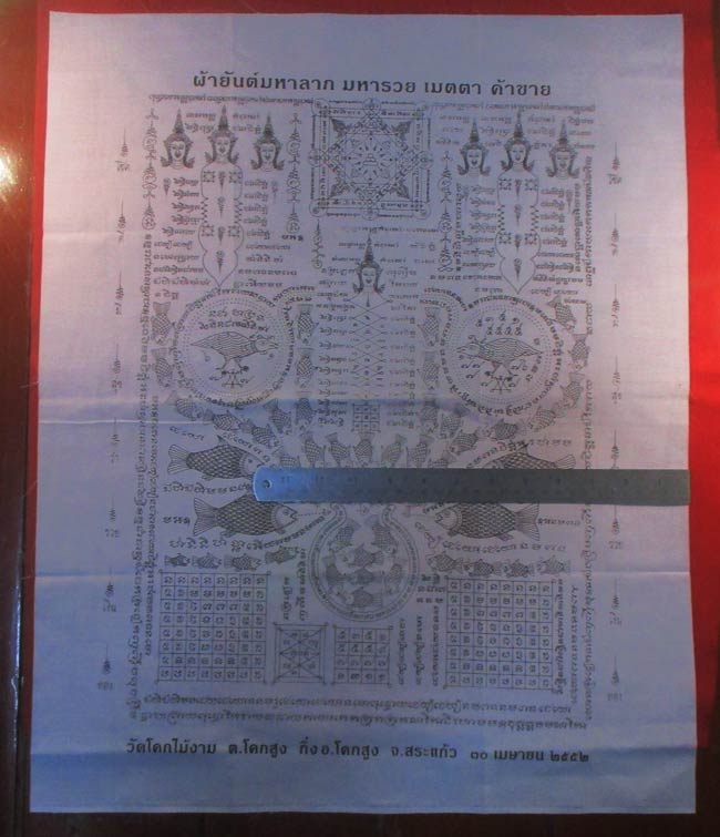 ผ้ายันต์ มหาลาภ มหารวย เมตตา ค้าขาย วัดโคกไม้งาม กิ่ง อ.โคกสูง จ.สระแก้ว ครับ (พระบ้าน ครับ) |