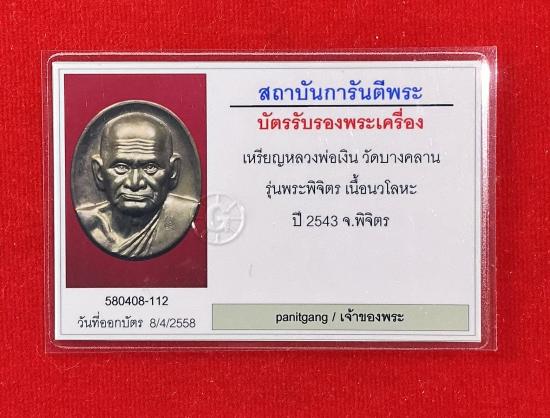 เหรียญหลวงพ่อเงิน รุ่นพระพิจิตร นวะโลหะ พร้อมบัตร