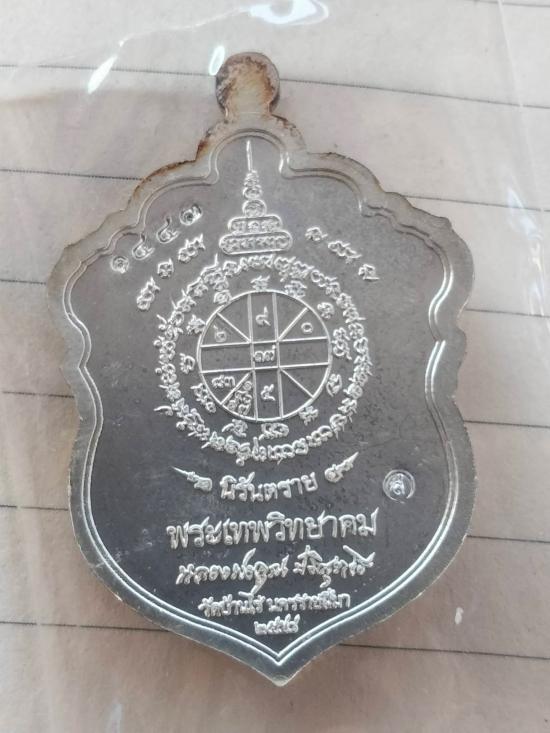 หลวงพ่อคูณ ปี2558 รุ่นสุขในหัวใจ เหรียญเสมาเนื้อกะหลั่ยเงิน หมายเลข 1443 มีคราบเหลืองดังรูปนะ จัดส่ง ปณ.บางปะอินครับ