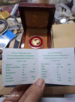เหรียญกษาปณ์ที่ระลึกครองราชย์ ครบ 70 ปี ปี 2559 เนื้อทองคำขัดเงา พร้อมกล่องและอุปกรณ์เดิมๆ