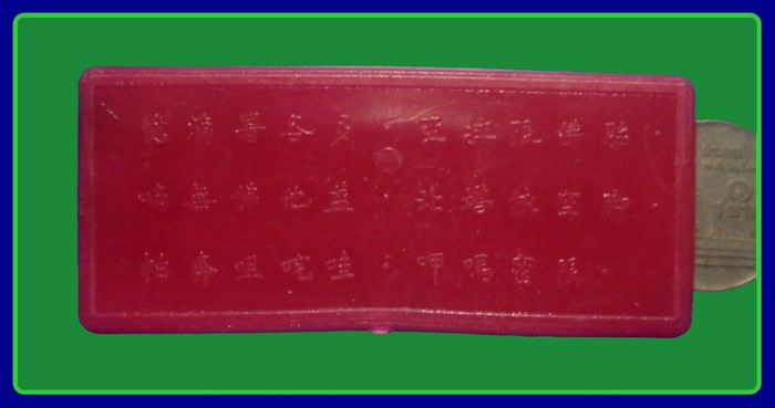 แผ่นพลาสติกหลวงพ่อโอภาสี ภายในบรรจุคาถายอดพระกัณฐ์พระไตรปิกที่หลวงพ่อโอภาสี