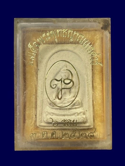 พระผงพระพุทธญาณนเรศวร์ รุ่นแรก หลังรูปเหมือน ปี 2528 สมเด็จพระญาณสังวรฯ วัดบวรนิเวศฯ กทม. (มีเกศา)