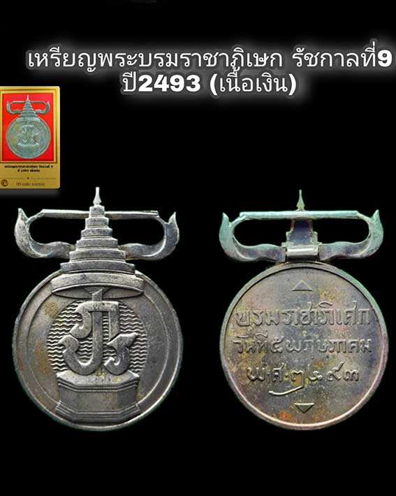 เหรียญพระบรมราชาภิเษก รัชกาลที่ 9 ปี 2493 เนื้อเงิน พร้อมบัตรรับรอง