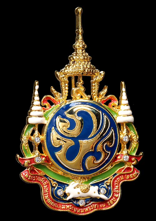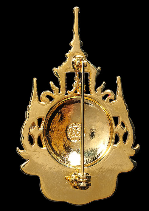 มีมหาพิชัยมงกุฎ ครอบด้านบนเป็น สีทอง ล้อมด้วย ลายกนก ทำให้ เข็มที่ระลึก งดงามอย่างยิ่ง