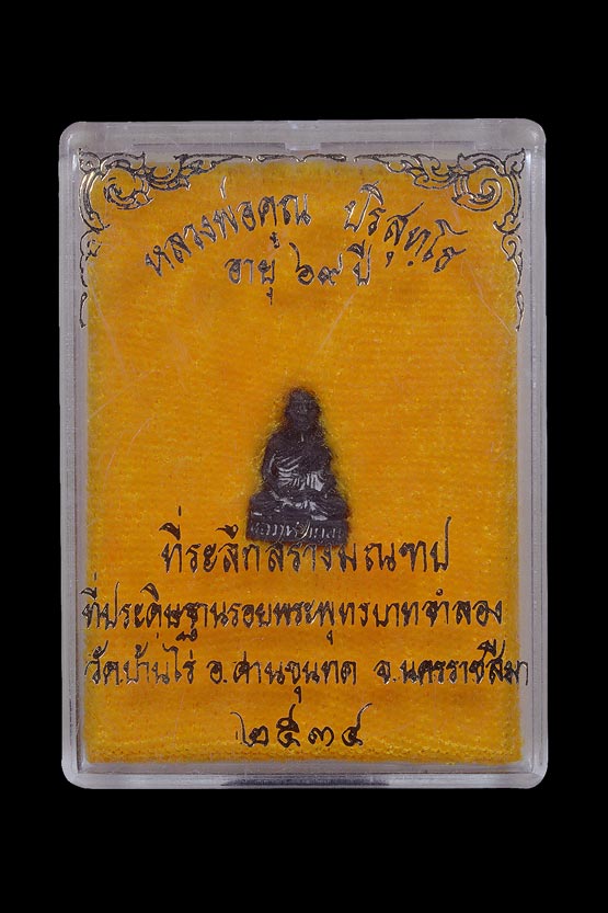 รูปหล่อเหมือนนั่งสมาธิ ( จิ๋ว ) รุ่น อายุ 69 ปี ที่ระลึกสร้างมณฑปที่ประดิษฐานรอยพระพุทธบาทจำลอง ( เนื้อนวโลหะ ) พ.ศ.2534 ( กล่องเดิม )