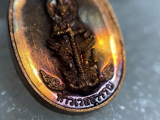 หลวงปู่แผ้ว ปวโร เหรียญเม็ดเเตง ท้าวเวสสุรรณ เนื้อทองเเดง