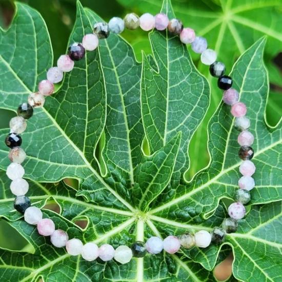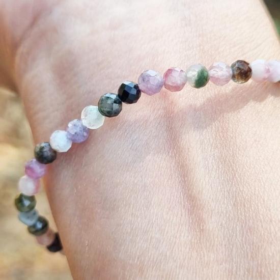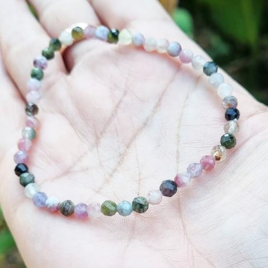 ข้อมิอทัวร์มาลีน เรนโบว์ (Tourmaline) "หินแห่งพลัง" เครื่องประดับมินิมอลลิสม์ เจียระไนเป็นเหลี่ยมเพชรเล่นแสง ขนากเม็ด 4 มิล