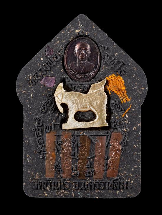 พระขุนแผนผงพรายกุมาร (เนื้อผงว่านดำ+ฝังแพะเขาควาย+ฝังเหรียญ ลพ.คูณ+ฝังตะกรุด 5 ดอก+ฝังจีวร) หลวงพ่อคูณ วัดบ้านไร่ ปี 2557 มีหมายเลขกล่องเดิมๆ