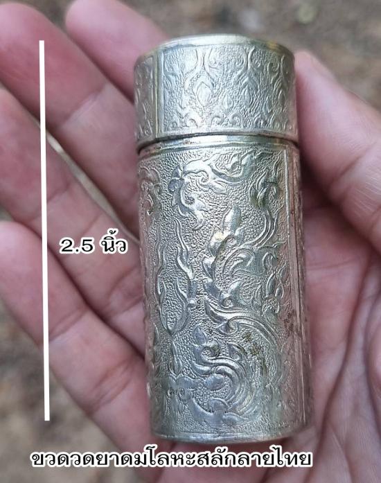 ขันจิ๋วพร้อมพาน ขันน้ํามนต์ขนาดเล็ก ขนาด 2.5 นิ้ว + ขวดยาดม โลหะสลักลายไทย