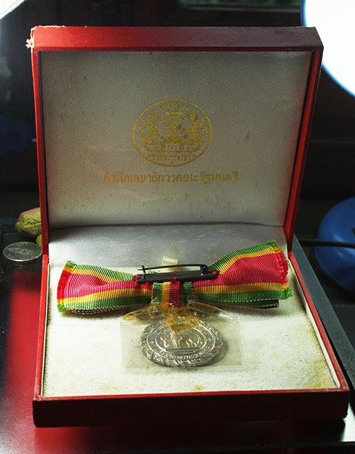 เหรียญแพรแถบ " ครุฑหลังช้าง "เนื้อเงิน บำเหน็จแห่งความยั่งยื นและมั่นคงในราชการ" พร้อมกล่อง ในซองเดิม