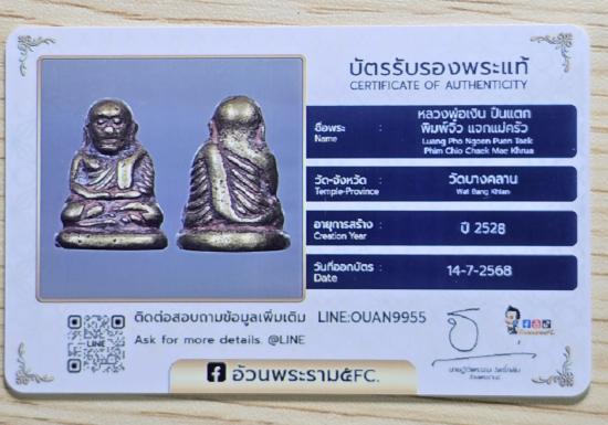 หลวงพ่อเงิน บางคลาน รุ่นปืนแตก วัดคงคาราม ปี 2528 พิมพ์จิ๋วปืนแตก(แจกแม่ครัว) พร้อมบัตรเพื่อนบ้านครับ