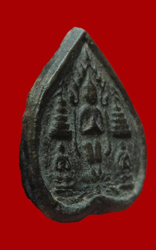 พระยอดขุนพล พระโมคคัลลา พระสารีบุตร ขนาดพิมพ์ใหญ่ ทรงพิมพ์ ใบโพธิ์ 3 × 3 นิ้ว เนื้อจัด