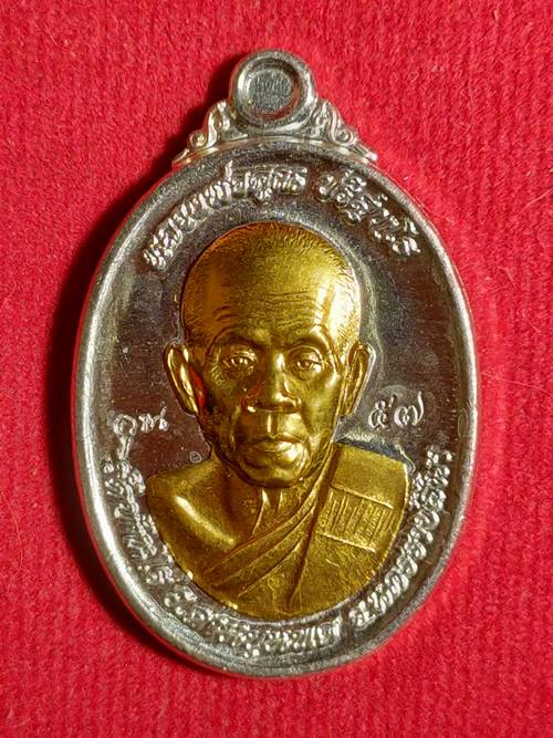 เหรียญหลวงพ่อคูณ ปริสุทโธ 91 ปี รุ่น รวย รวย รวย ออกวัดบ้านไร่ ปี 2557 เนื้อ เงินหน้าทองคำ หมายเลข 57 ราคาจอง 5000 บาท สภาพสวย เคาะเดียวแดง