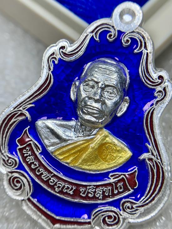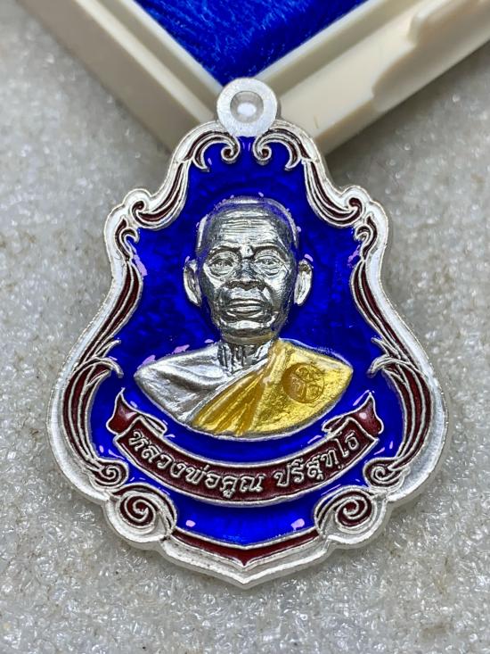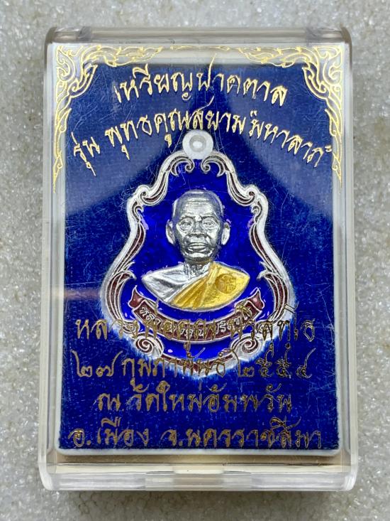 เหรียญปาดตาล หลวงพ่อคูณ ปริสุทฺโธ รุ่น พุทธคุณสยาม ออกวัดใหม่อัมพวัน อ.เมือง จ.นครราชสีมา พ.ศ.๒๕๕๔ เนื้อเงิน ลงยาสีน้ำเงิน (สภาพสวย) พร้อมกล่องเดิมๆจากวัด