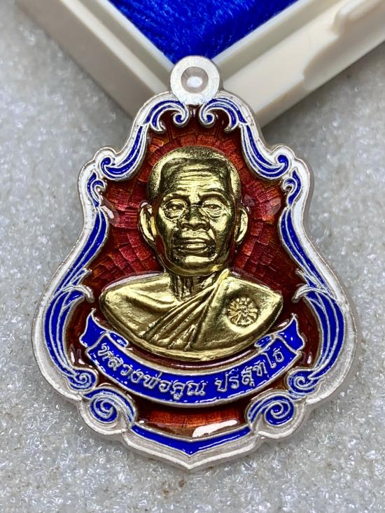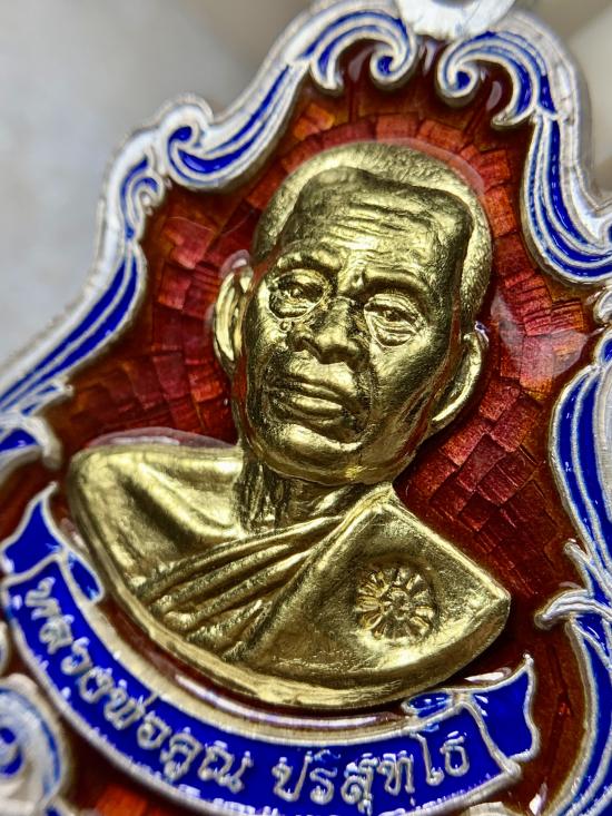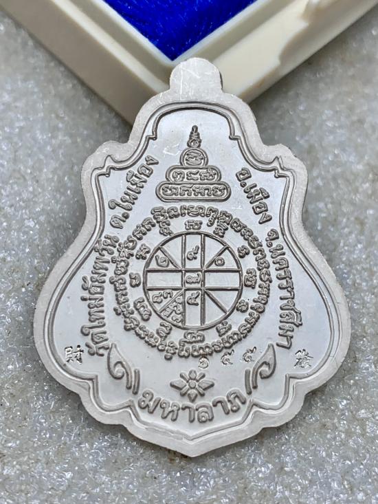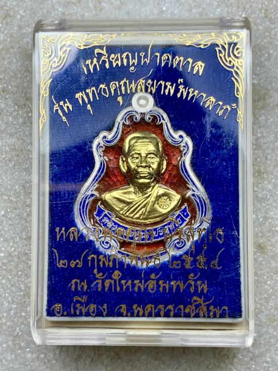เหรียญปาดตาล หลวงพ่อคูณ ปริสุทฺโธ รุ่น พุทธคุณสยาม ออกวัดใหม่อัมพวัน อ.เมือง จ.นครราชสีมา พ.ศ.2554 เนื้อเงิน ลงยาสีแดง หน้ากากทองคำ (สภาพสวย) พร้อมกล่องเดิมๆจากวัด