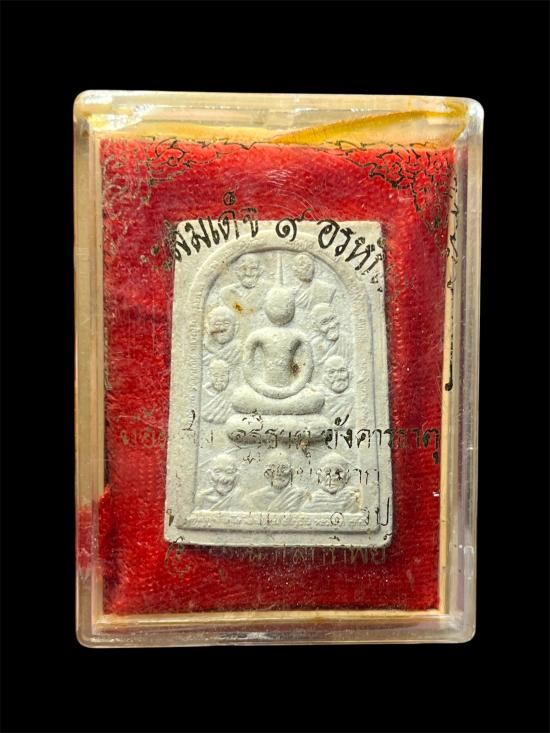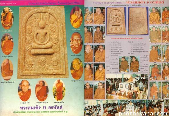 พระสมเด็จ 9 อรหันต์ เช่น หลวงปู่มั่น หลวงปู่แหวน ฯลฯ มวลสารเนื้อผสมอัฐิธาตุ อังคารธาตุ เกศา ชานหมาก มูลนิธิโลกทิพย์ จัดสร้าง 2538 |