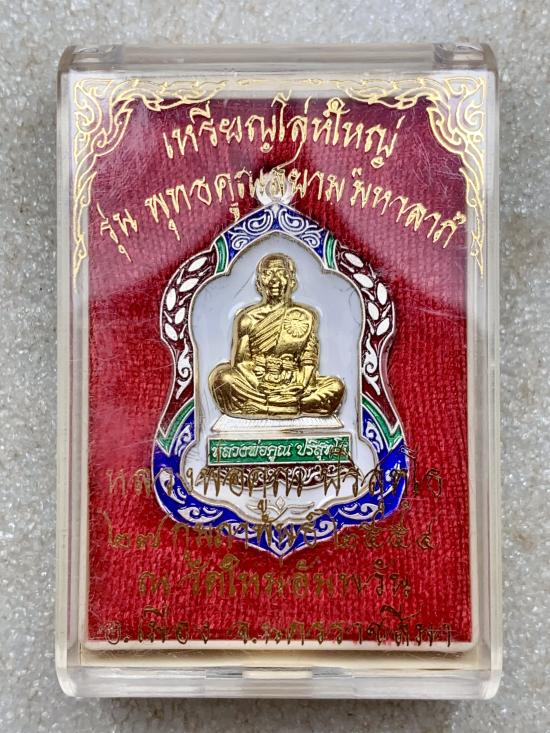 เหรียญโล่ใหญ่ หลวงพ่อคูณ ปริสุทฺโธ รุ่น พุทธคุณสยาม มหาลาภ ออกวัดใหม่อัม อ.เมือง จ.นครราชสีมา พ.ศ.2554 เนื้อเงิน ลงยาราชาวดี หน้ากากทองคำ หมายเลข 100 (สภาพสวย) พร้อมกล่องเดิมๆจากวัด