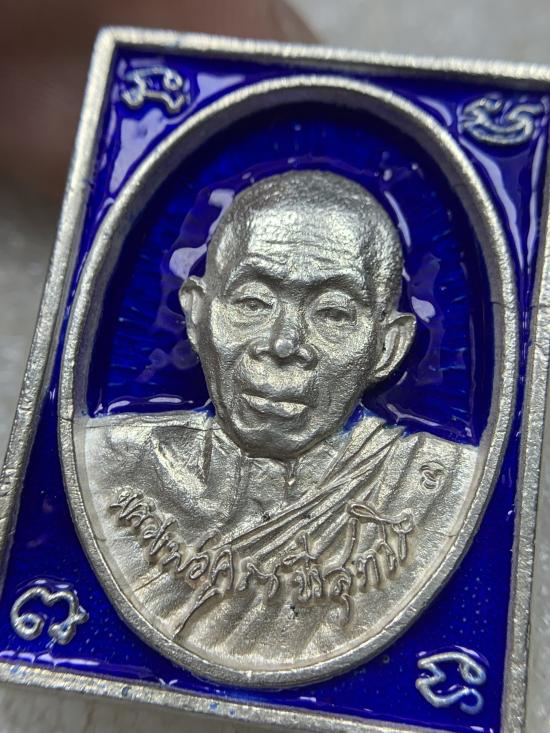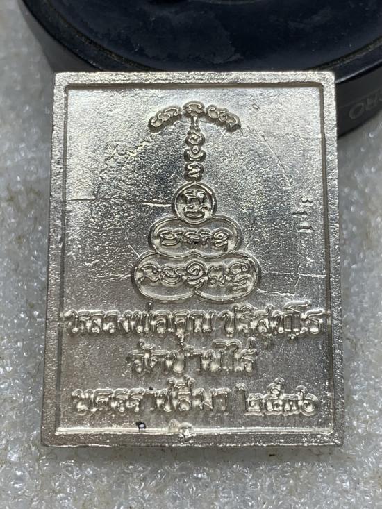 เหรียญหล่อสี่เหลี่ยม หลวงพ่อคูณ ปริสุทฺโธ รุ่น ลายเซ็น วัดบ้านไร่ อ.ด่านขุนทด จ.นครราชสีมา พ.ศ.๒๕๓๖ เนื้อเงิน ลงยาสีน้ำเงิน