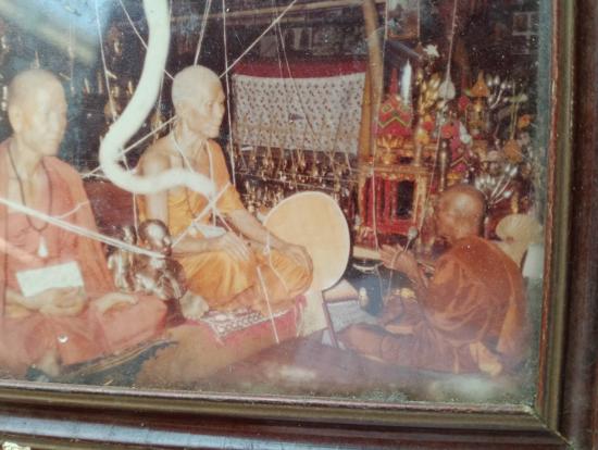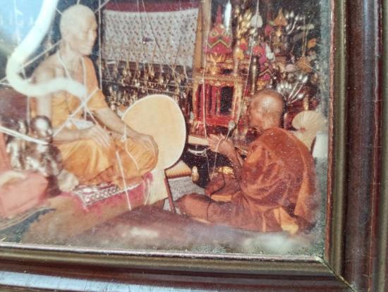 รูปถ่ายหลวงปู่ครูบาวงศ์ ขณะปลุกเสกวัตถุมงคลไม่ทราบปี แน่ชัด ขนาดโปสการ์ดวัดรวมกรอบ 11x14 cm หายาก หลักร้อย