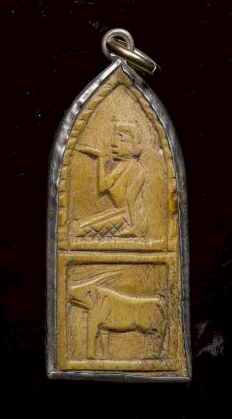 พระประจำวันงาแกะ สามส่วนหลังนางกวักเลี่ยมเงินแท้ |