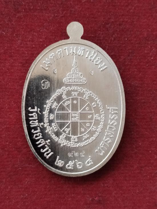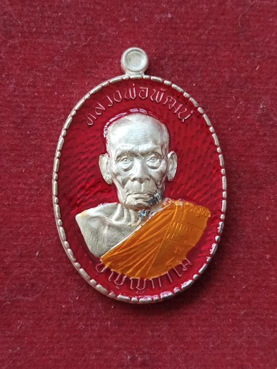 เหรียญ ลพ. พัฒน์ รุ่นเจริญพรกลาง เนื้อเงินลงยาแดง ขอบปล้องอ้อย เลข ๙๒๔ วัดห้วยด้วน นครสวรรค์ ปี 2564