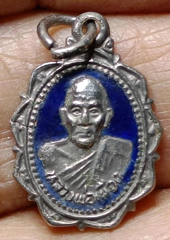 เหรียญหลวงปู่เผือก วัดกิ่งแก้ว สมุทรปราการ พิมพ์แมงกะบี้เล็ก ปี2515 กะไหล่เงิน ลงยาสีฟ้า เบาๆครับ